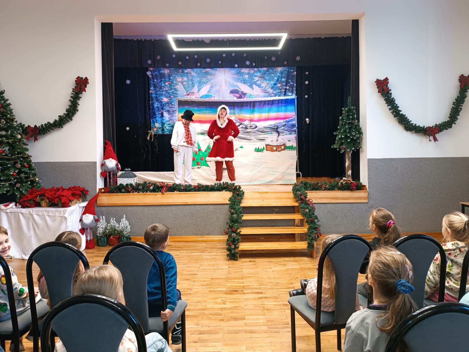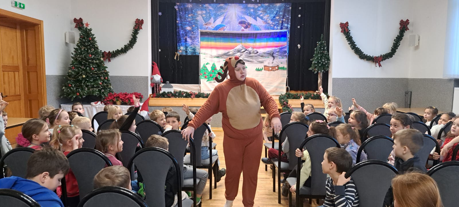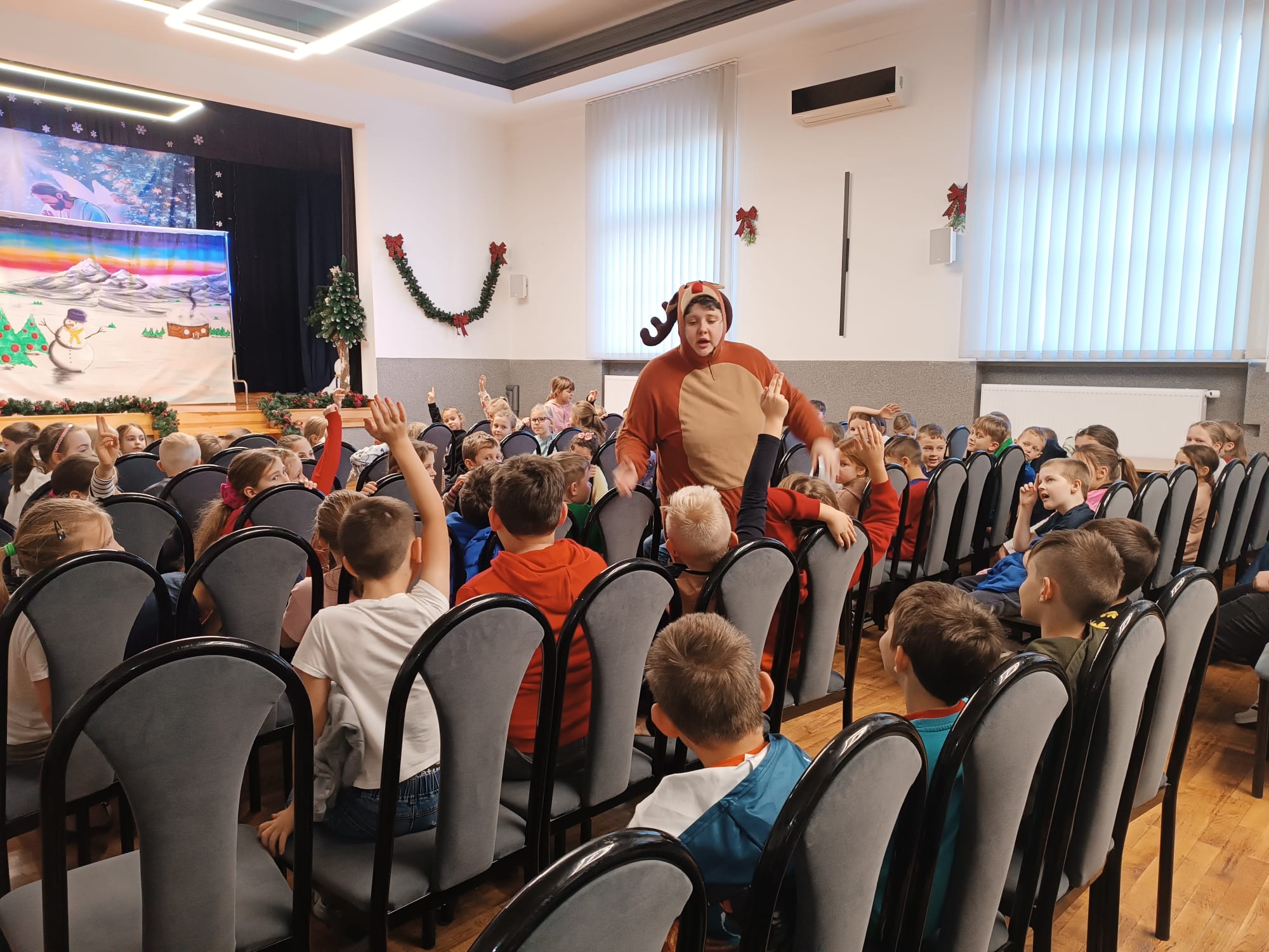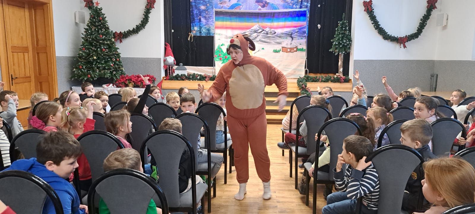Dzieci uczestniczące w spektaklach z entuzjazmem wchodziły w rolę detektywów, śledziły tropy i angażowały się w poszukiwania Renifera Kopytko. Emocje, śmiech i wspólna zabawa sprawiły, że przedstawienie stało się prawdziwą zimową przygodą, która na długo zostanie w pamięci najmłodszych widzów.
