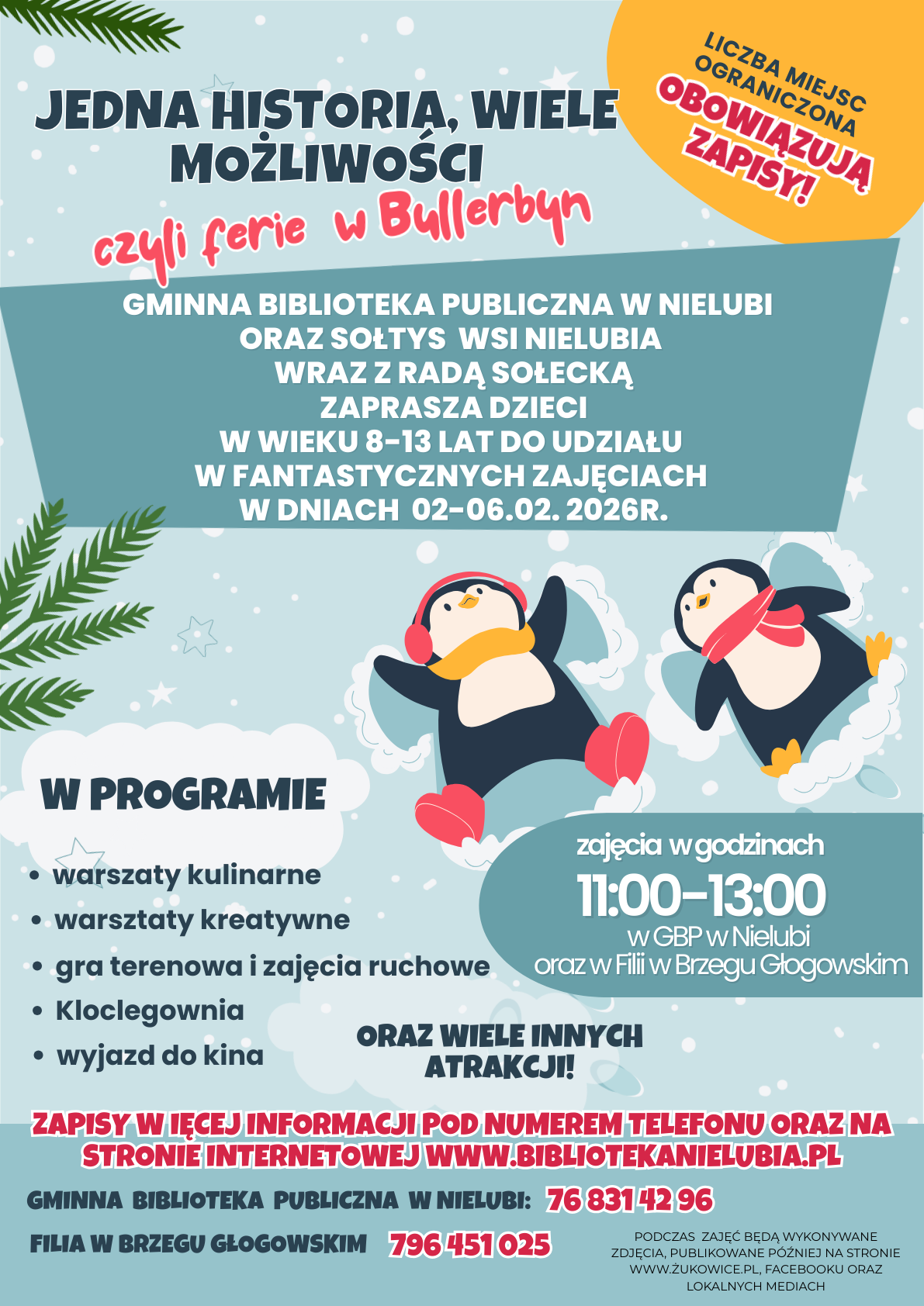 Gminna Biblioteka Publiczna w Nielubi oraz Filia w Brzegu Głogowskim zapraszają dzieci w wieku 8–13 lat do udziału w zimowych zajęciach feryjnych inspirowanych światem Bullerbyn – pełnym przygód, przyjaźni i dobrej zabawy.