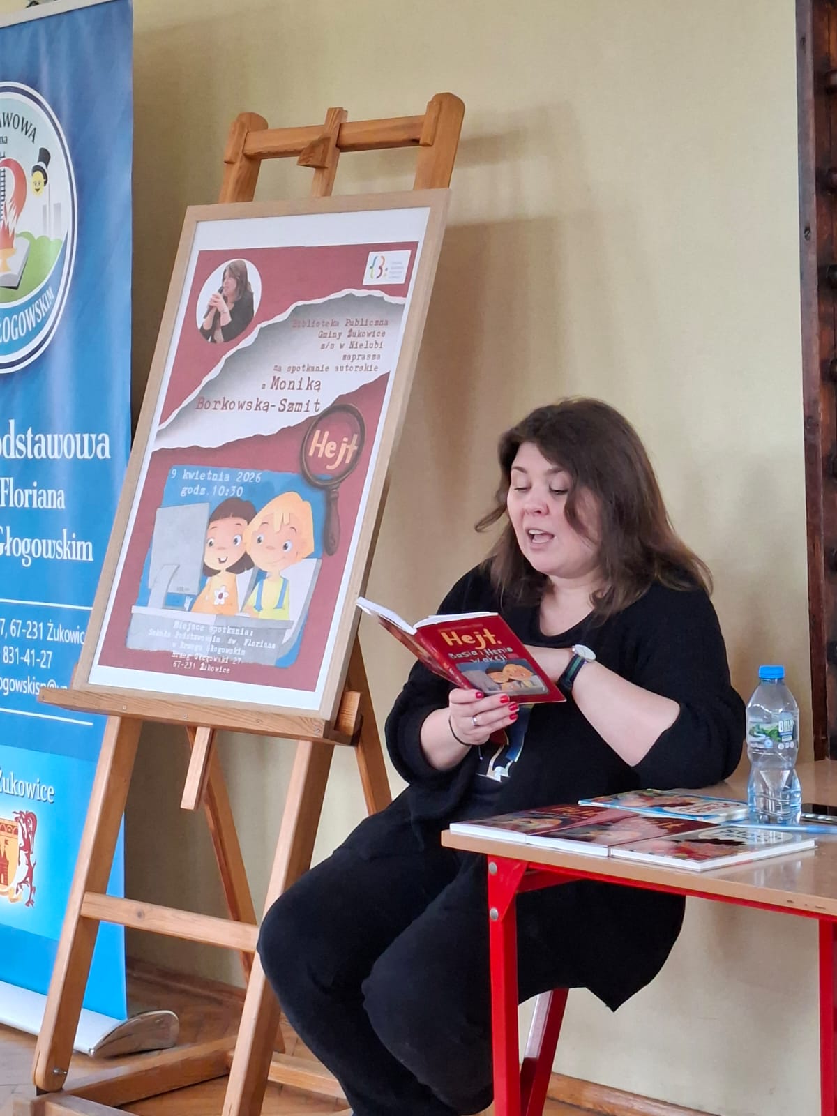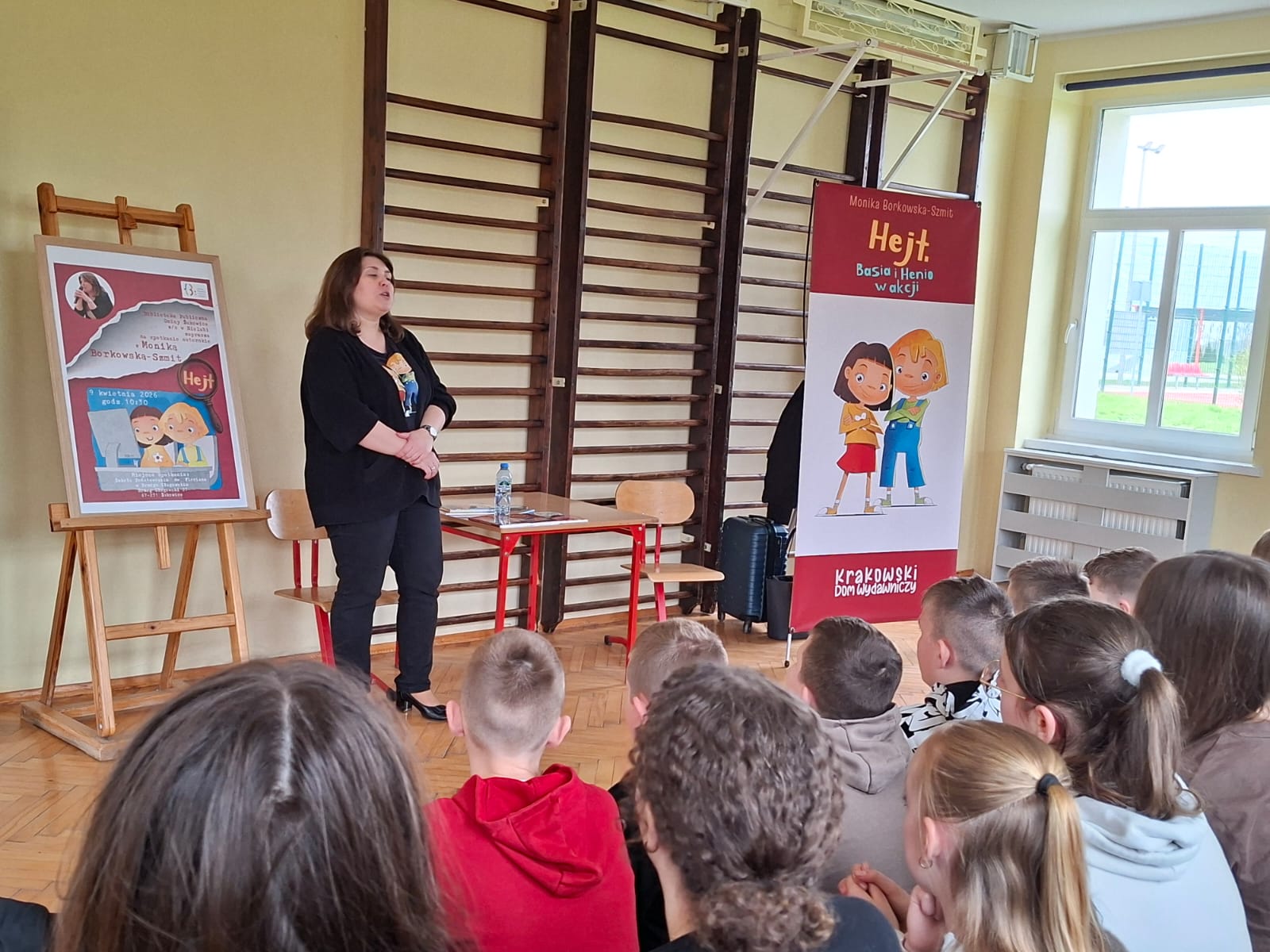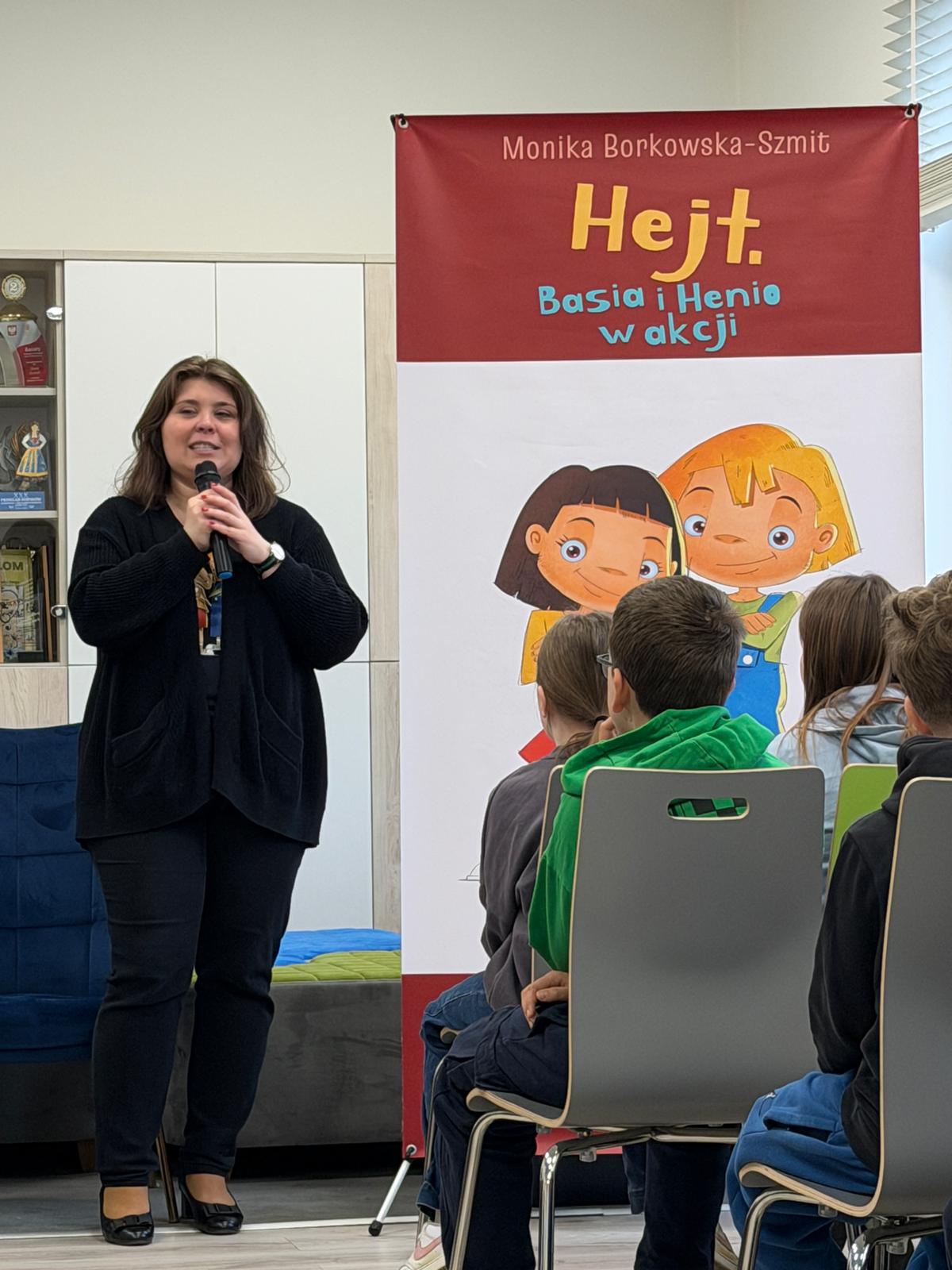 W drugiej części spotkania młodzi czytelnicy mieli okazję poznać bohaterów książki Hejt. Basia i Henio w akcji. Autorka w ciekawy i przystępny sposób opowiedziała o ich przygodach, pokazując, że nawet trudne tematy można przedstawić w sposób zrozumiały i angażujący.