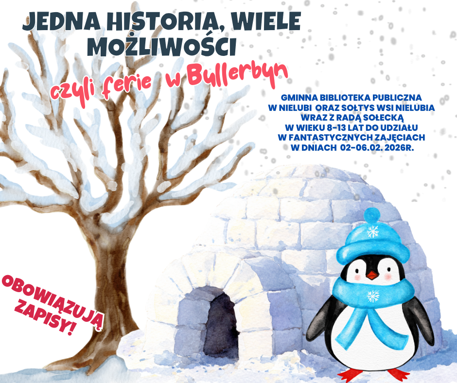 Gminna Biblioteka Publiczna w Nielubi oraz Filia w Brzegu Głogowskim zapraszają dzieci w wieku 8–13 lat do udziału w zimowych zajęciach feryjnych...
