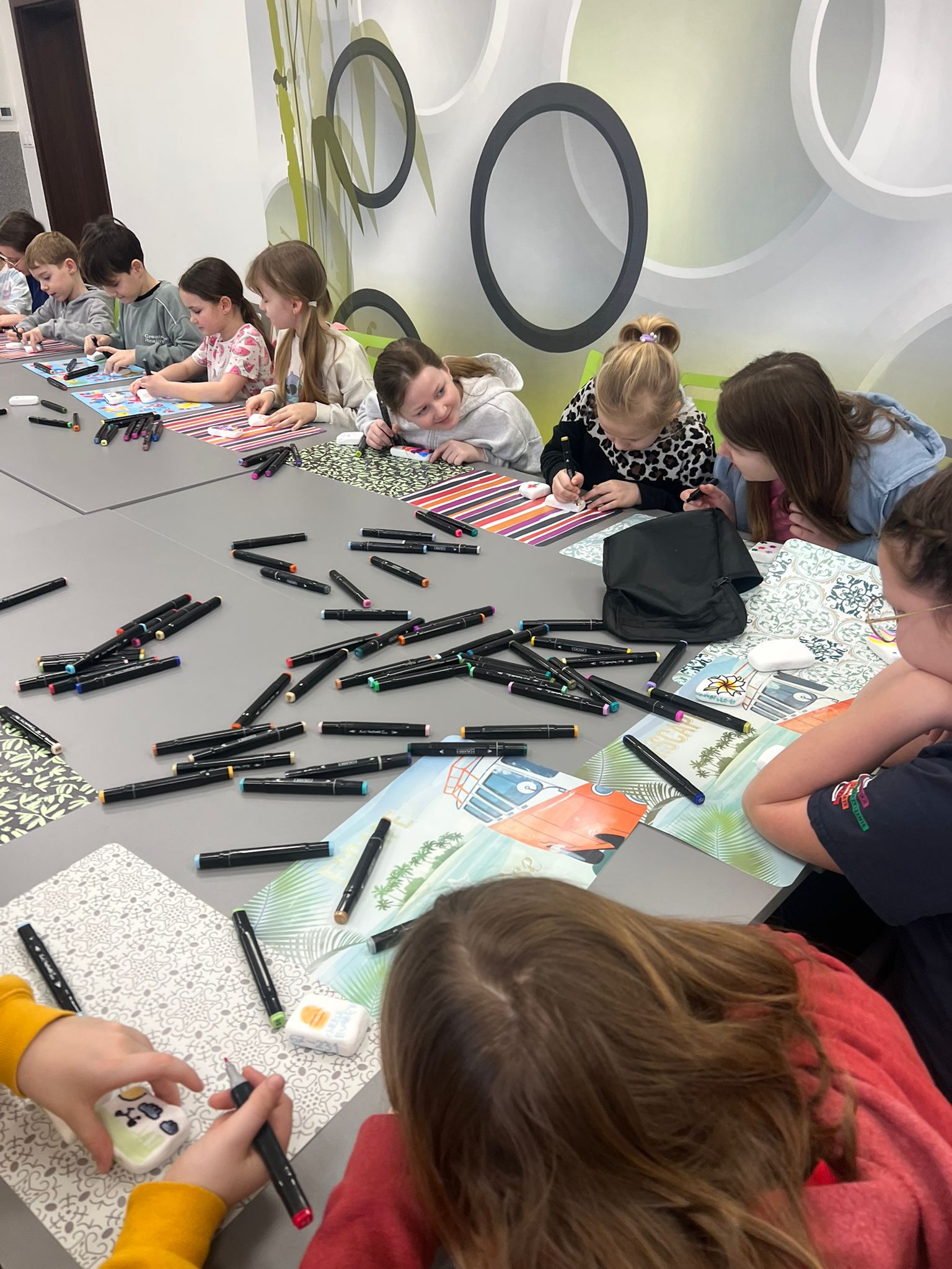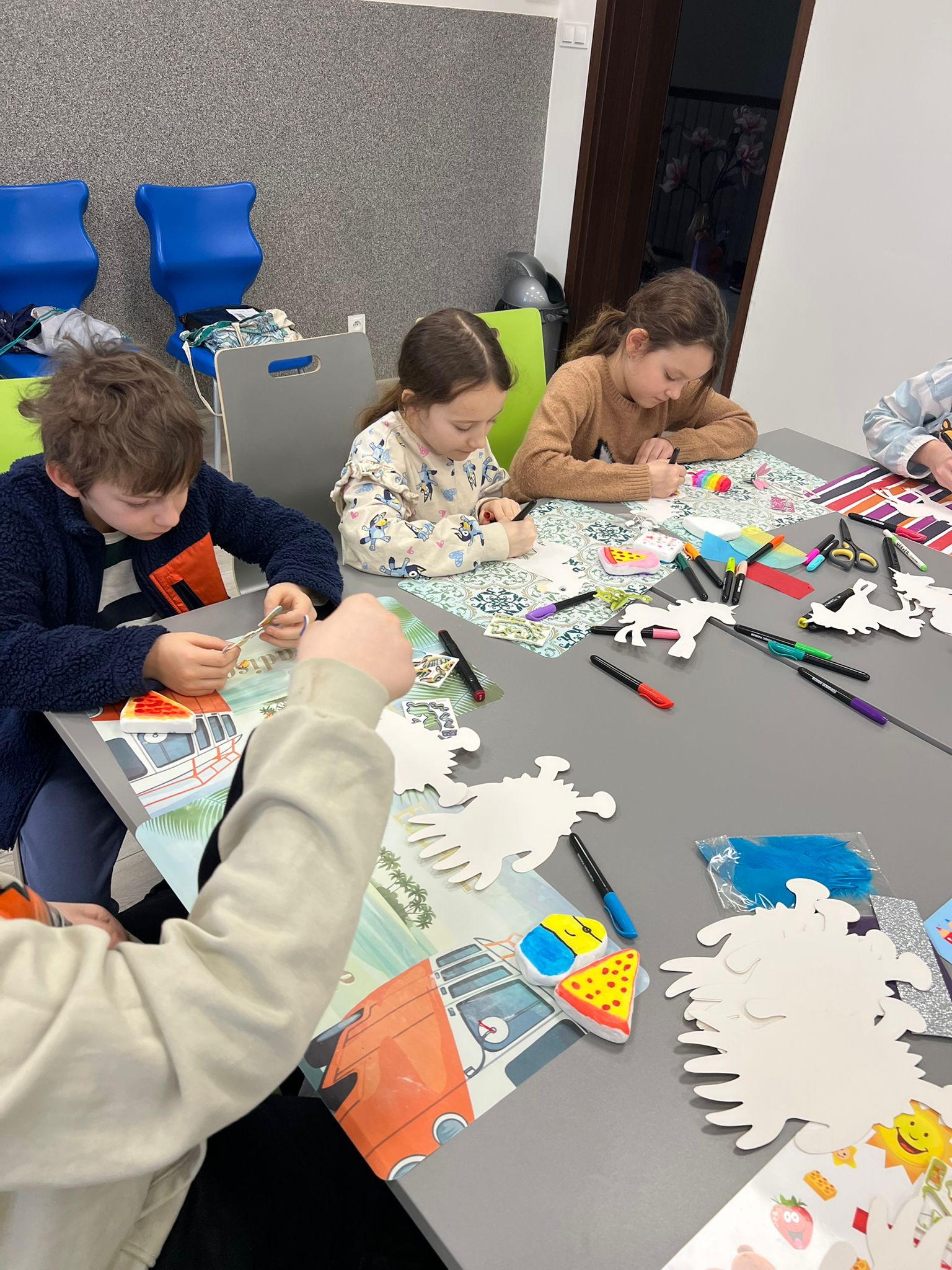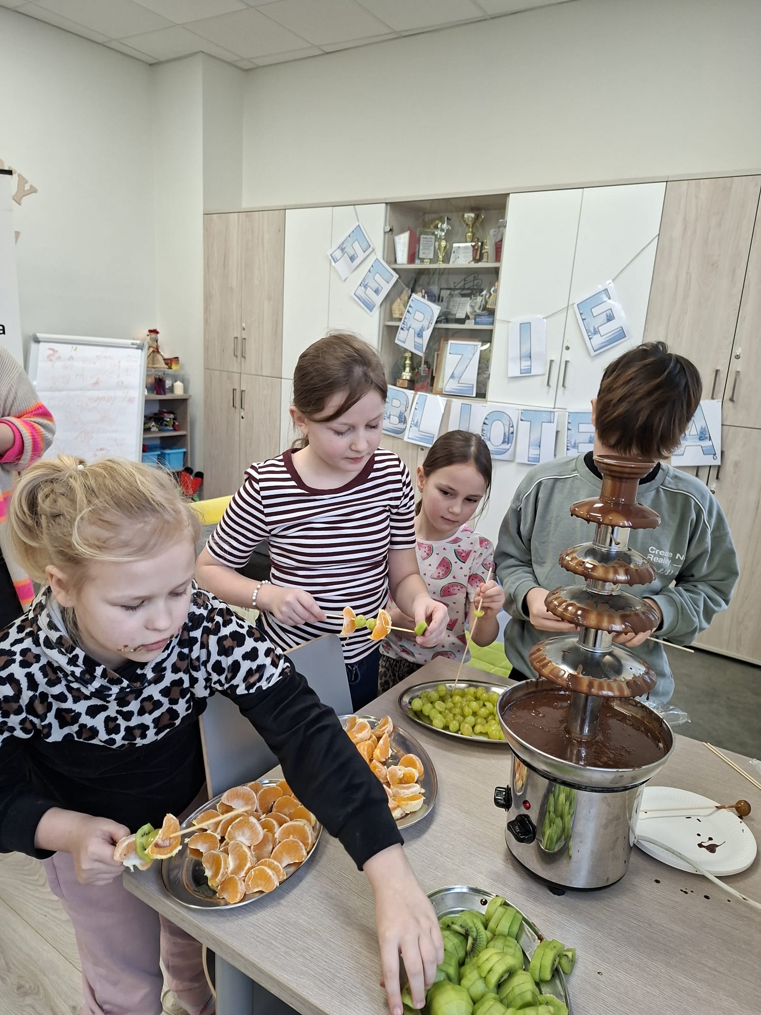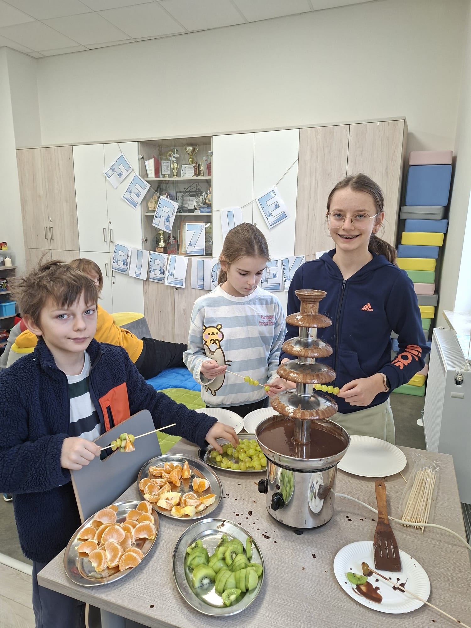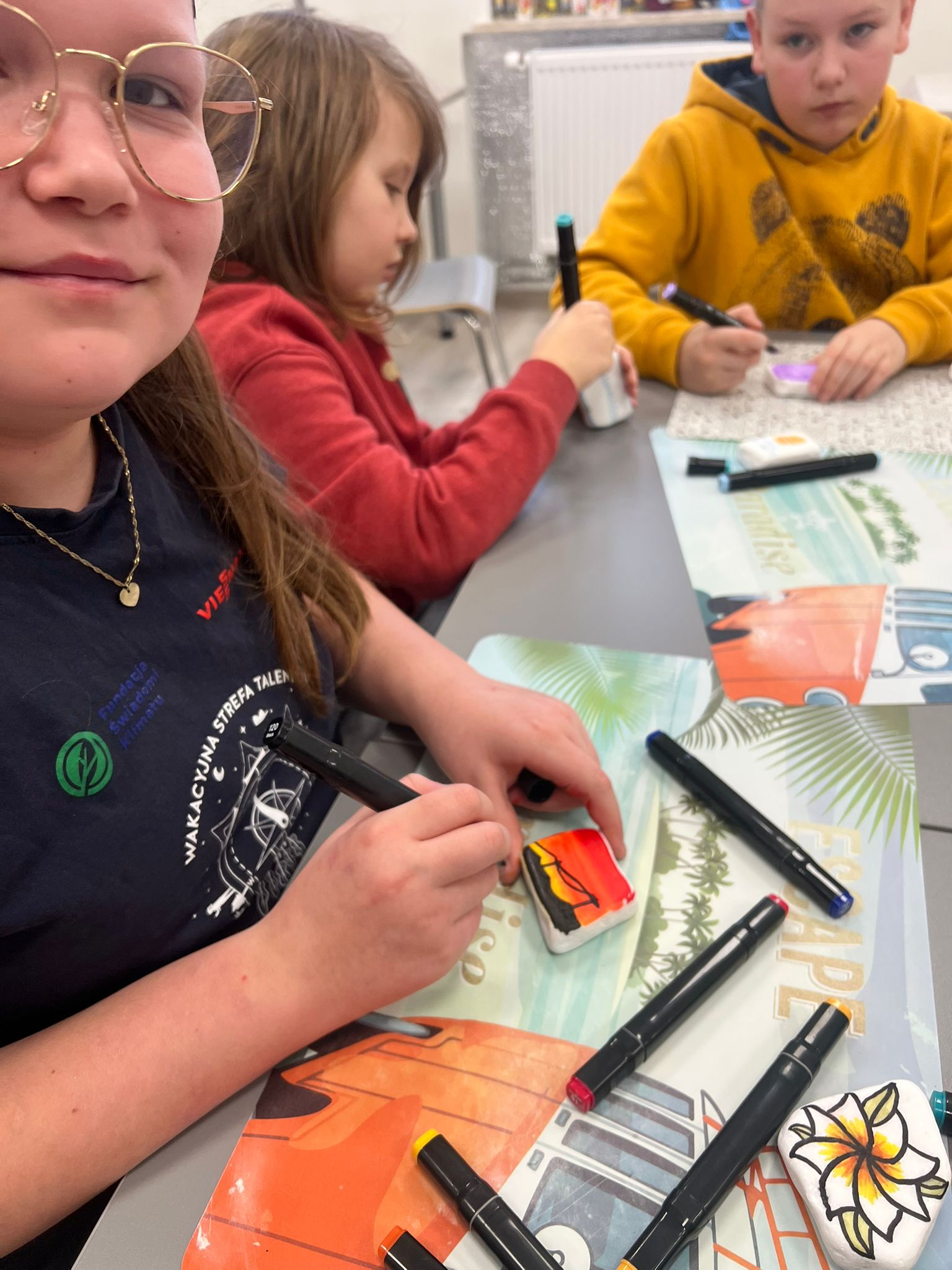 Czas znalazł się również na twórczość artystyczną – dzieci malowały kamyczki w ramach akcji polegającej na zostawianiu ich w różnych miejscach, by sprawić radość przypadkowym znalazcom. Jednym z najbardziej wyczekiwanych momentów był słodki akcent dnia: gofry oraz czekoladowa fontanna, które wywołały uśmiechy od ucha do ucha.