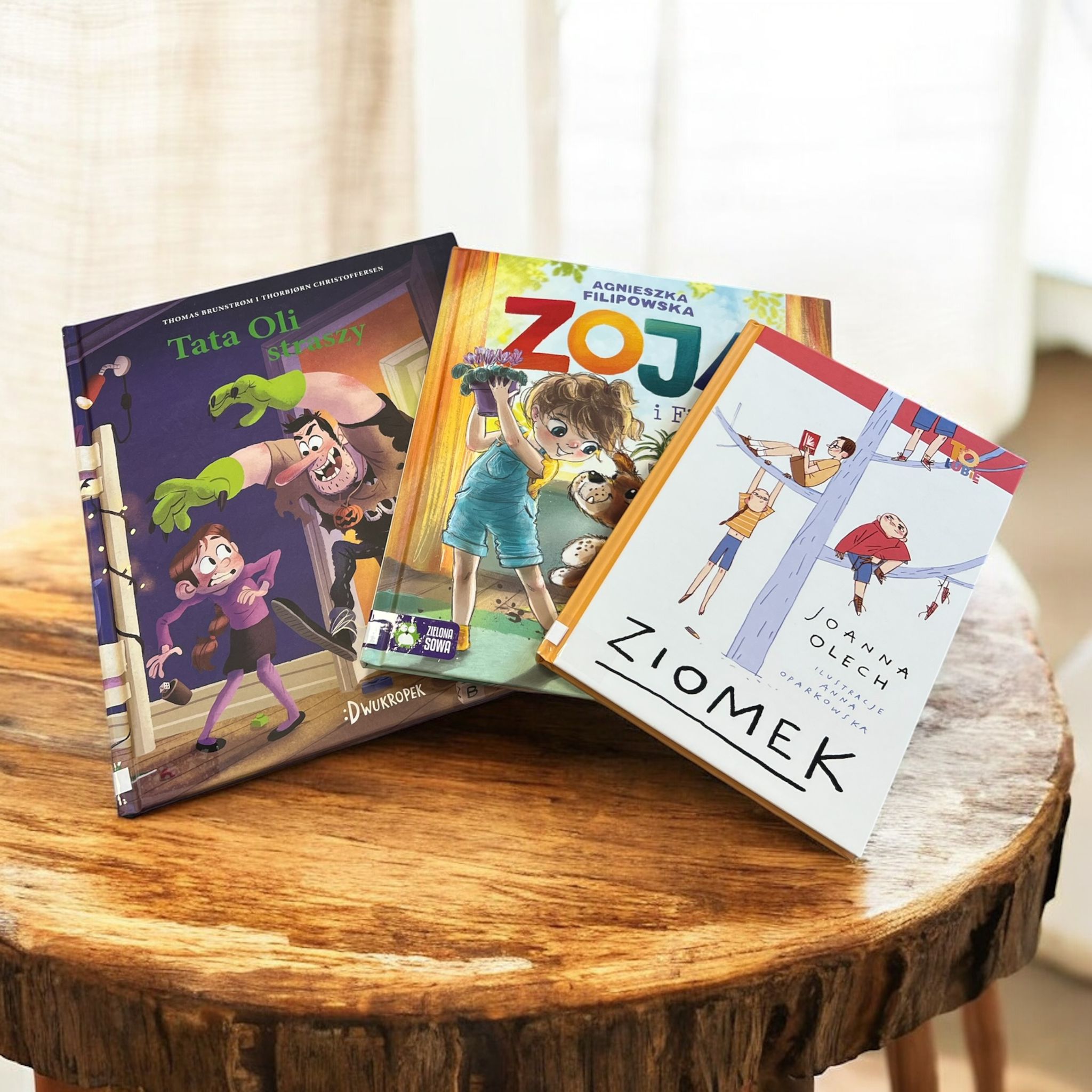 Joanna Olech – „Ziomek” Zbiór opowiadań o nowych dzieciach w klasie i na podwórku, uczący budowania relacji bez potrzeby posiadania markowych gadżetów.